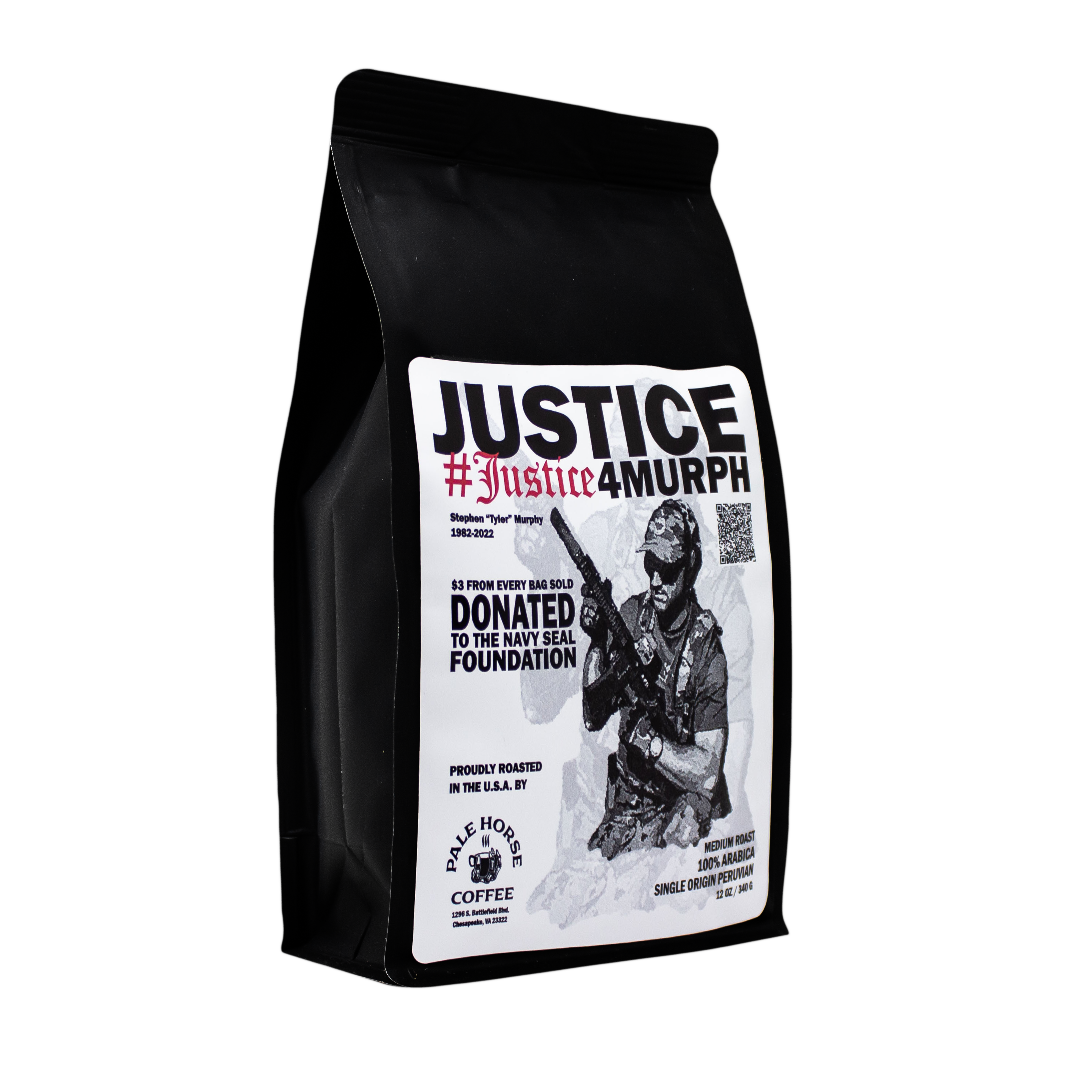 Our Peruvian coffee roast celebrates the memory of an American hero and friend of Pale Horse Coffee gone too soon at the hands of an intentional act of violence on July 4th, 2022. $3.00 from every 12 ounce bag sold goes to the Navy Seal Foundation in Stephen “Tyler” Murphy’s honor. Join us in remembering Murph and praying the justice system prevails. #justice4murph